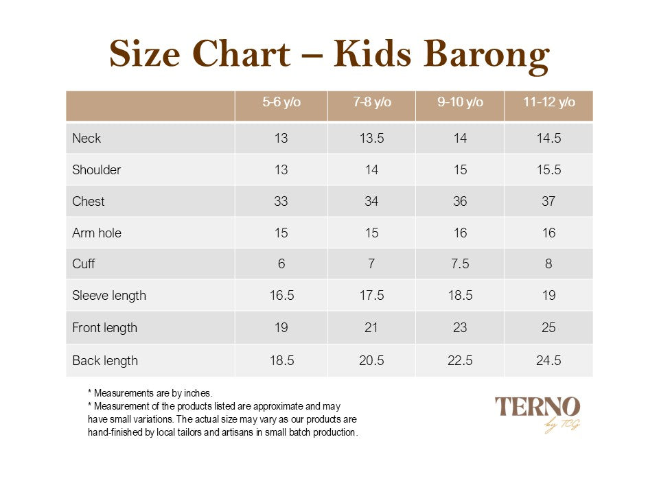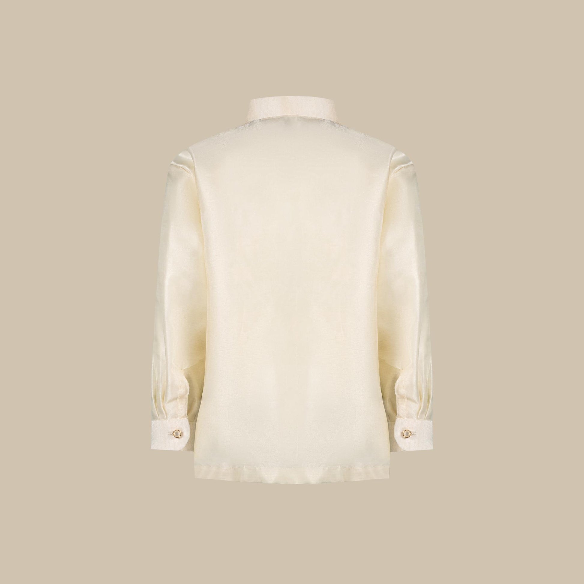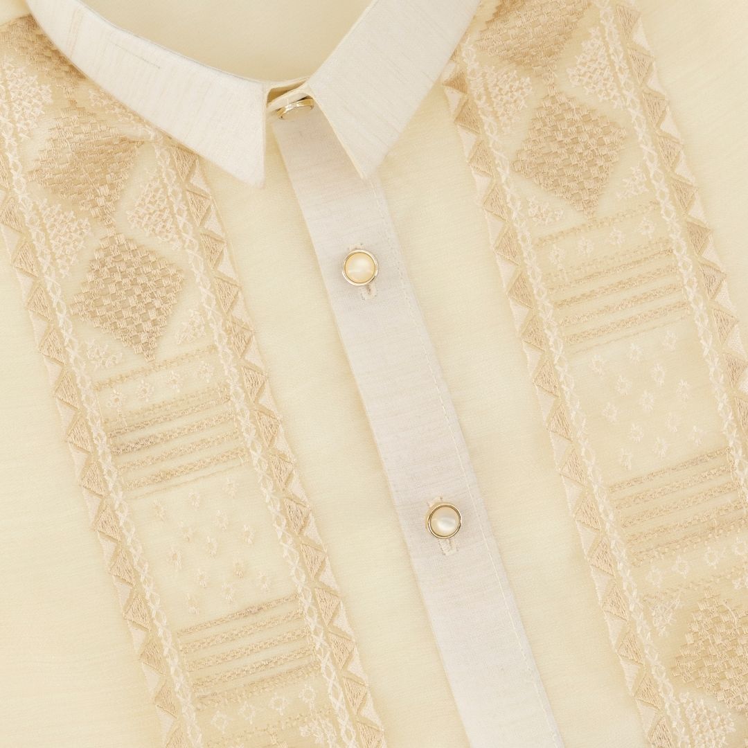 Andres Barong Pambata is made with cream organza silk with two-toned cream embroidery details on the front and cream lining for added comfort. Sizes available are from 5 years old to 12 years old.